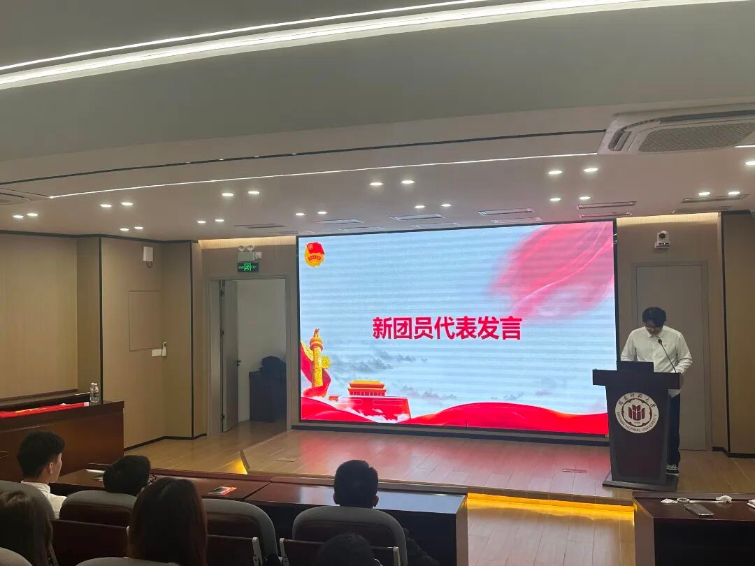 新团员代表林海龙同学与老团员代表吴毓淇同学先后发言,分享感悟、表明决心。廖小文老师热烈祝贺并寄语全体新团员,勉励他们牢记身份、加强学习、勇担使命、争当表率。本次仪式在激昂的团歌声中落下帷幕,崭新的团员证与闪耀的团徽,标志着一段全新征程的开始。相信新团员们必将铭记誓言,以更高的标准要求自己,努力成长为堪当民族复兴重任的时代新人,为实现中华民族的伟大复兴贡献青春力量。