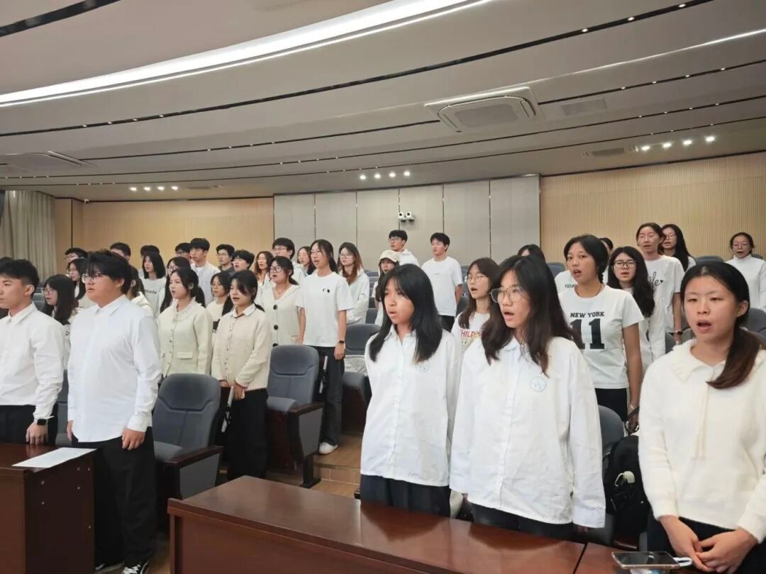 入团仪式在雄壮激昂的国歌声中拉开序幕。五十名新团员精神饱满,肃立高唱,歌声嘹亮,共同迎接这一庄严时刻。