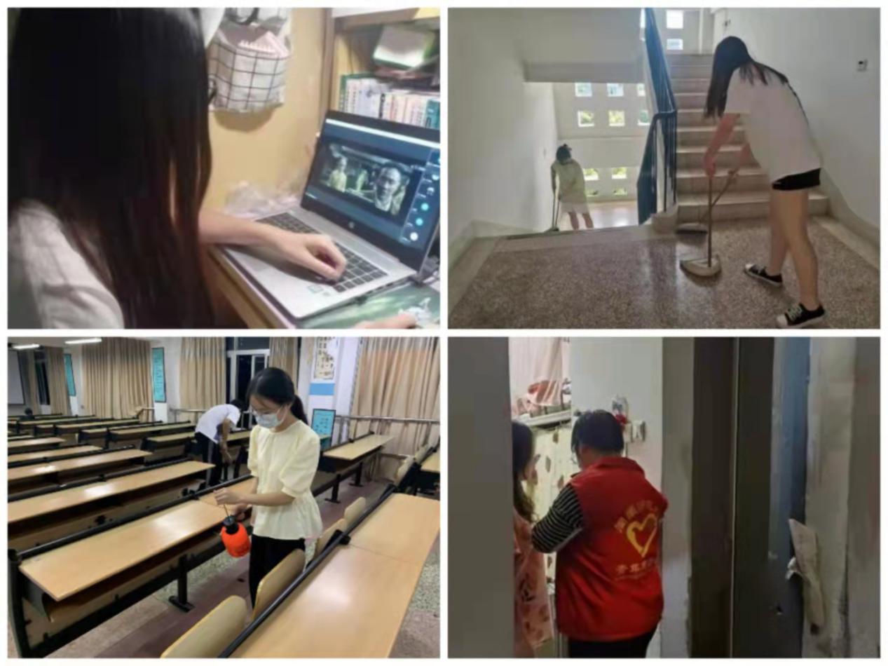 学子用满含深情的话语诉说着对祖国华诞的祝福与恩情;此外,学院持续推进“庆祝建党100周年”主题教室装扮大赛和“同心抗疫,共克时艰,党员先行”我为师生群众办实事系列志愿服务活动(含校门防疫值班、快递站测量体温、教室和宿舍楼道清扫消杀工作、图书馆书籍整理、弘扬正能量网络卫士等)。