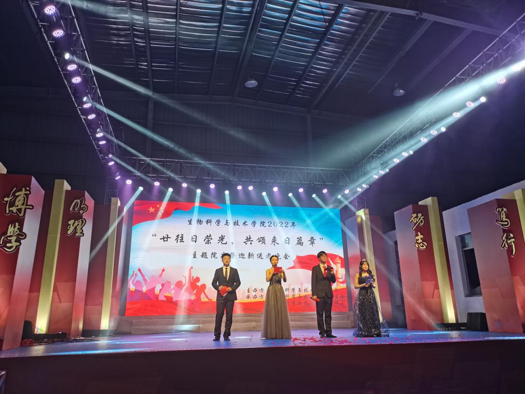 生科院2022年“廿往昔荣光,共颂来日篇章”主题院庆暨迎新送老晚会在球类馆隆重举行。生科院党委书记蒲俊之、院长陆銮眉、党委副书记陈文婷以及部分教师代表、全体辅导员出席了晚会。