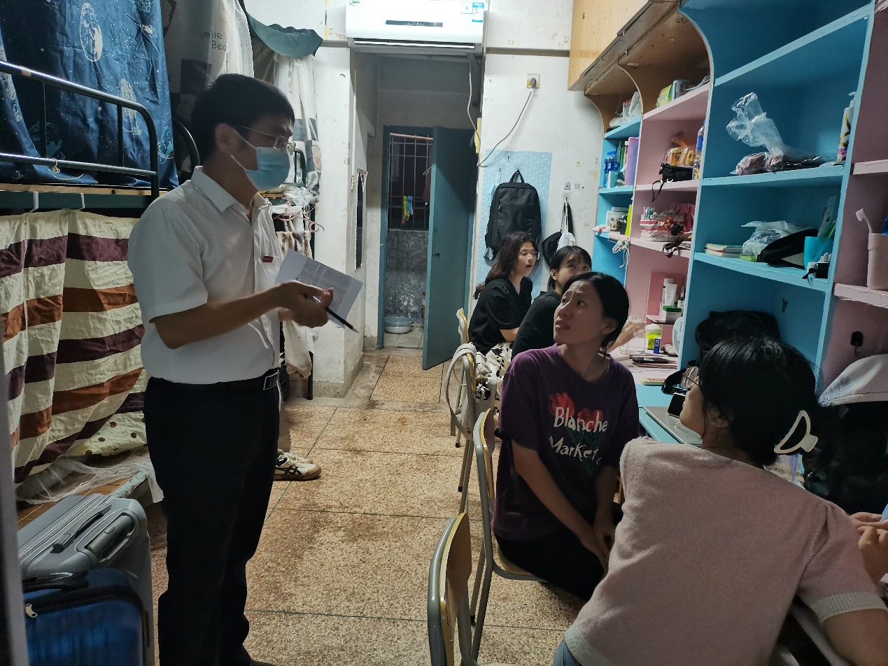 9月15日傍晚,院党委书记蒲俊之老师、院长陆銮眉老师,党委副书记陈文婷老师、副院长张丹凤老师、副院长张国广老师和辅导员、班主任们一同走访研究生和本科生宿舍,就学习、生活和居住各方面与同学们进行了深入的交流。