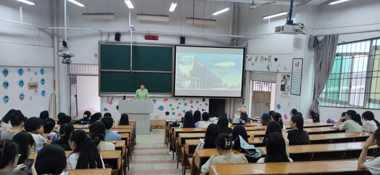 为进一步做好毕业生离校前的各项教育服务工作,将文明离校、爱校荣校和感恩教育贯穿毕业生思想教育全过程,帮助毕业生正确把握当前就业创业和社会发展形势,6月7日下午,生科院在达理楼南306教室召开2023届毕业生离校教育服务主题班会。会议通过线上、线下的形式同步开展,学院党委副书记陈文婷、本科毕业生辅导员张学强参加本次会议。