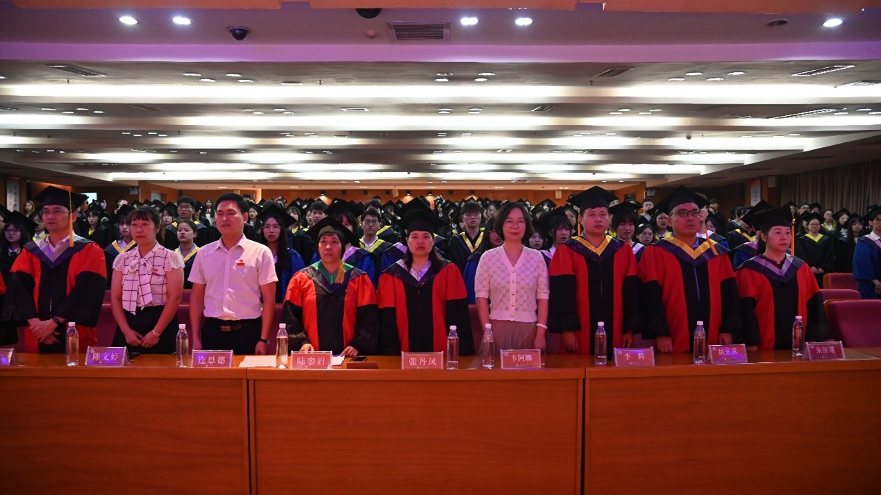 在逸夫图书馆五楼报告厅隆重举办2024届学生毕业典礼。生科院党政领导干部、系主任、院学位评定委员会成员、毕业班班主任、全体政工干部、生科院2024届本科生、研究生毕业生、家长代表及生科院学生组织干部代表、艺术团成员代表参加了本次毕业典礼。此次典礼由2024届毕业生辅导员廖小文老师主持。