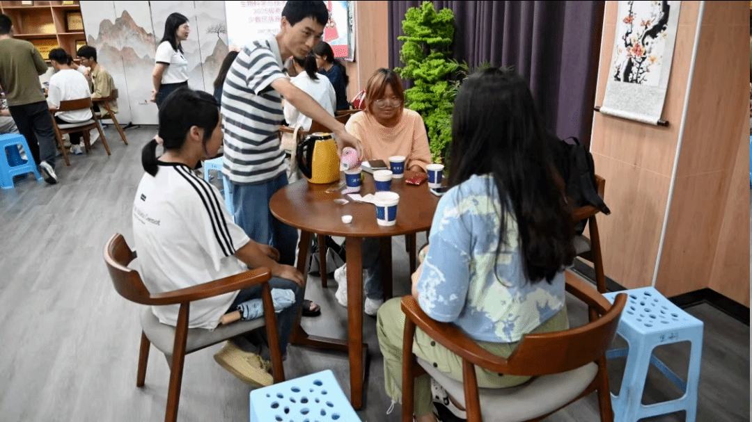 座谈会上,陈文婷老师代表学院对少数民族同学致以双节的问候,她向大家详细介绍了“元光大饼”和“闽师红”系列茶叶产品,希望同学们能够通过这类特色食品,加深对漳州文化的了解与热爱,将本地元素与专业知识相结合,更好地融入大学学习与生活。随后,来自不同民族的同学们,依次分享了各自民族的节日习俗、饮食特色、传统建筑等,现场气氛轻松融洽,交流热烈。