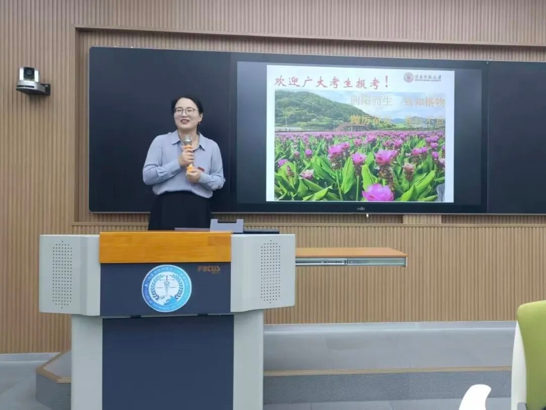 的师资力量、科研平台、研究生培养体系及近年来在人才培养、科学研究、社会服务等方面取得的显著成效。她详细解读了学院生物与医药等相关硕士点的培养目标、课程设置、导师团队及毕业生就业前景,鼓励在场学生树立远大志向,积极报考闽南师大。在互动答疑环节,同学们围绕考研复习规划、专业课备考策略、招生政策、跨专业报考注意事项等问题踊跃提问,刘静娜教授及随行老师结合自身经验,逐一进行了耐心细致的解答,并针对性地提供了科学的备考建议和学习方法指导,现场气氛热烈而融洽,赢得了同学们的阵阵掌声。
