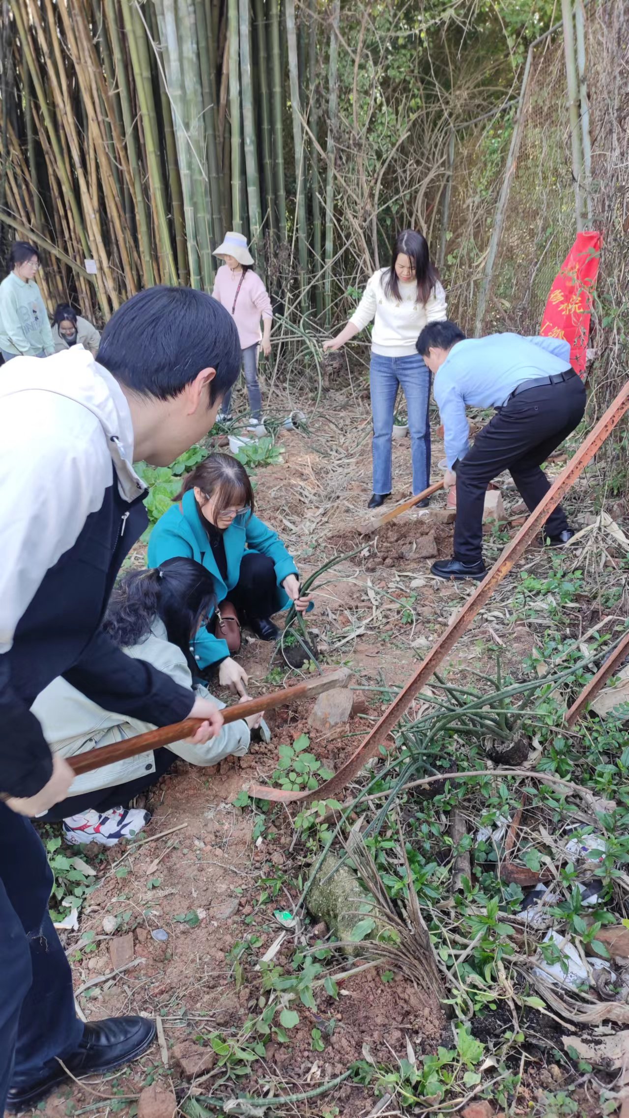 在大家的共同努力下,20颗红叶香椿树苗被有序地栽植在了预先准备好的位置,棒叶虎尾兰也被成功地移植到了植物园内。这些新栽植的绿植不仅将为植物园增添新的生命力,也象征着党员们对生态文明建设的承诺与贡献。活动期间,党员们互相帮助,共同完成任务,不仅锻炼了身体,更加深了团队合作意识,体现了党组织的凝聚力和战斗力。一片片新绿在植物园内展露,为校园增添了一抹春天的色彩。支部希望通过这样的实践活动,能够激发更多党员和师生投身到环境保护和绿色发展中去。每一位党员都应成为推动绿色生活、绿色发展的先行者和实践者。