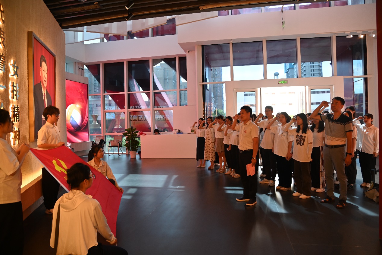 参观过后,在连恩德书记的带领下,全体党员面对党旗庄严宣誓,发出对党的铮铮誓言,激励自己、鞭策自己、进一步强化对中国共产党的信仰。