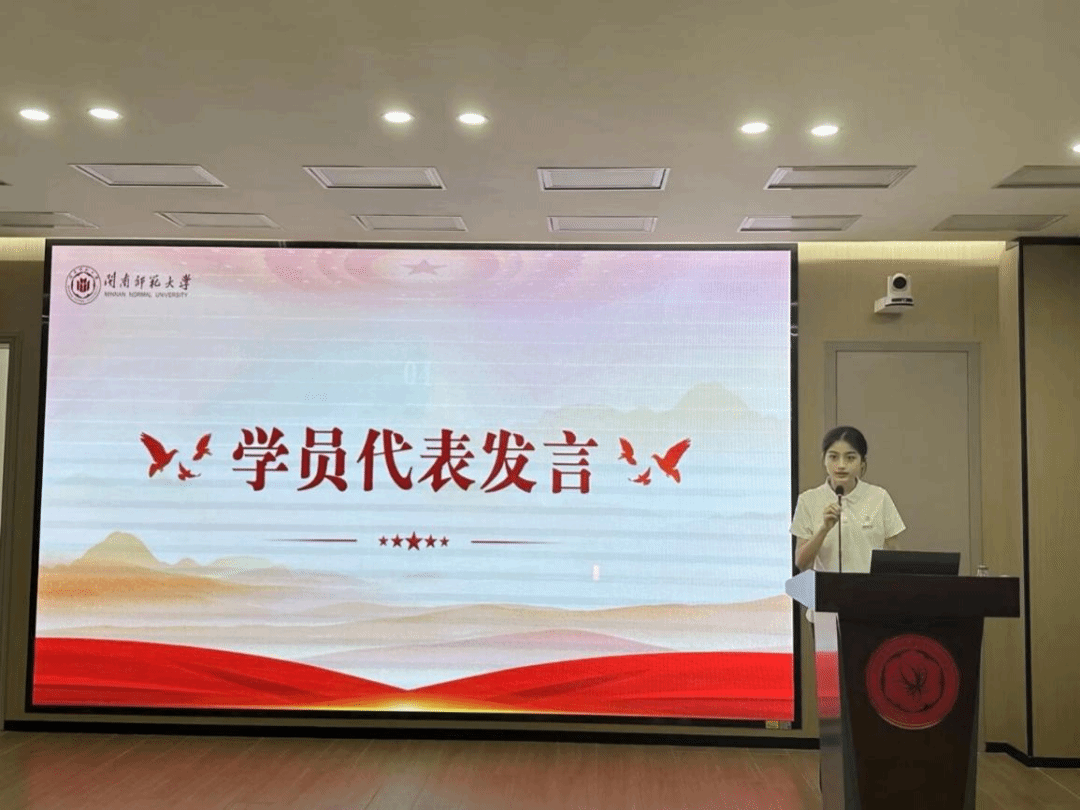 24食品科学与工程2班的尹思艺作为学员代表发言。她表示深感光荣并代表学员承诺:将通过培训精准领会党的号召,坚定跟党前行,学好专业知识,严格要求自我,夯实理论根基,提升能力素质,为社会主义现代化强国建设贡献力量。