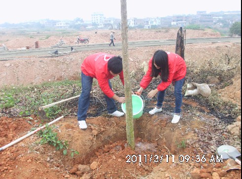 3月11日早上七点我系党员与志愿者在校门口集合后便乘车前往石亭镇森林公园,八点我们与有关工作人员以及人民子弟兵一起开始我们的植树活动。在那荒芜的土地上,我们纷纷行动起来,翻土、挖坑、种树、浇水,一个上午下来,我们也已筋疲力尽,然而我们却乐在其中,收获在其中。作为一名大学生党员,我们拥有着年轻,拥有着朝气,我们不仅要有积极的思想,还要去积极的行动。当时一个正在植树一个党员是这样理解植树的:“或许这只是我们的举手之劳,但却会使这个世界更加美好,而且在这个过程中我们认识且真切地体会到了一个生命的意义。