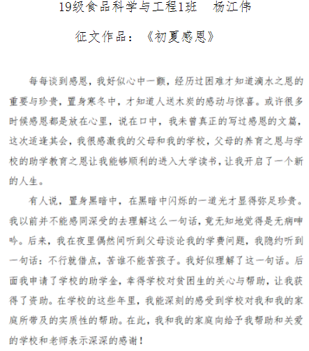 为进一步宣传国家学生资助政策及实施成效,激励广大受助学生奋发自强、立志成才、感恩奉献,不断推进精准资助,提升资助育人效果, 足交 团季开展“筑梦新时代,奋进新征程”诚信感恩教育活动。