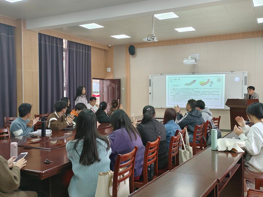 鉴于20级同学正处于备考研究生的重要起点,辅导员林老师围绕“专注、清晰、反馈、匹配、意义”等关键词,结合自身学习经历,向同学们进行了学习方法的分享。并带领同学们了解党的二十大召开重大意义,帮助同学们理解“五个牢牢把握”、“九个深刻体会”的丰富内涵,引导同学们在日常生活中,要坚定不移听党话、跟党走,鼓励大家勇担使命、踔厉奋发,把个人的理想追求融入党和国家事业之中,做到个人命运与国家发展同频共振。