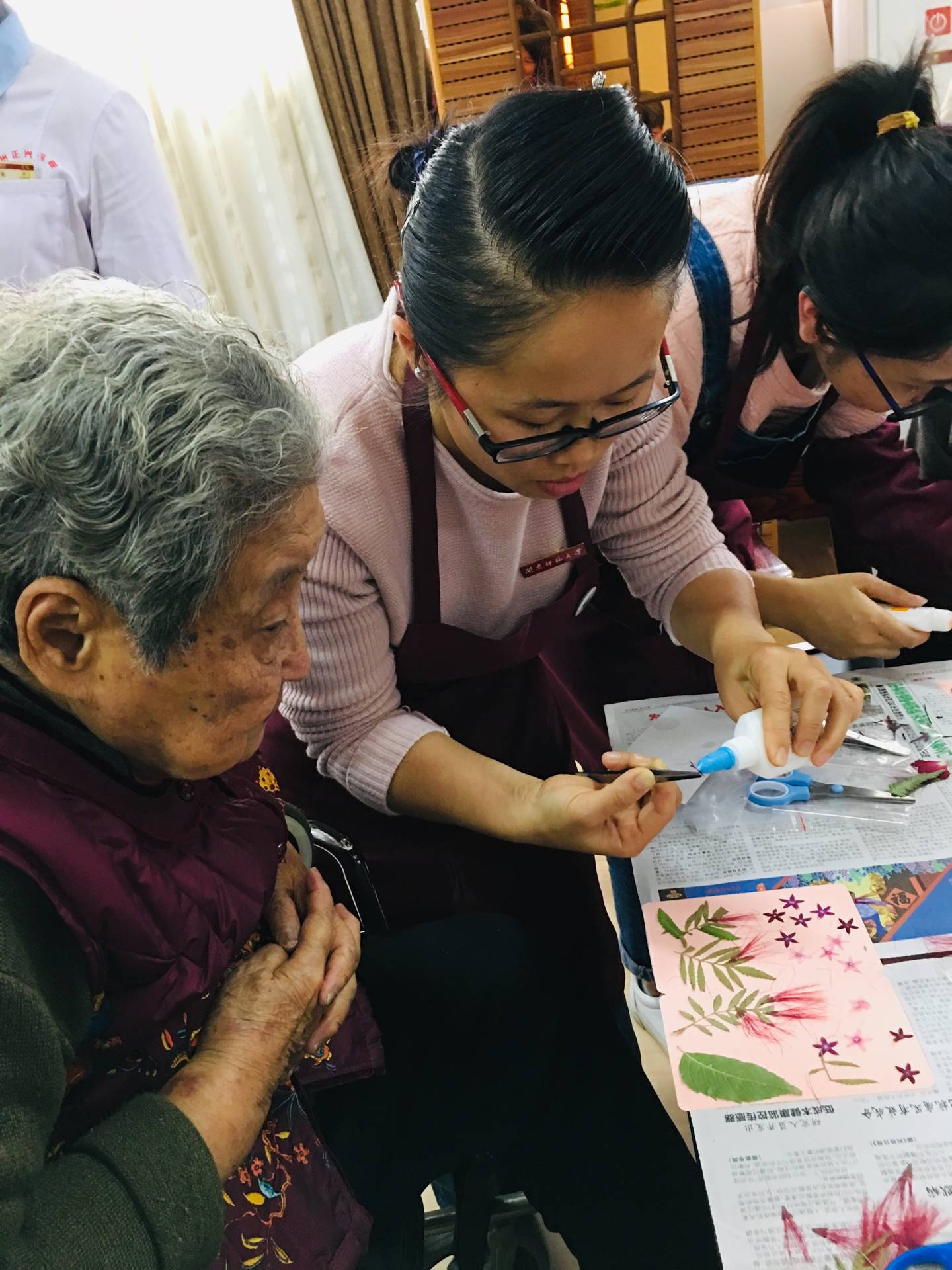 生科院园艺专业师生走进正兴新来福养护院,为老年人带来园艺疗法项目的最后一个活动“爱的传递——压花贺卡的制作”。这些平均年龄已经八十多岁的爷爷奶奶们都十分积极参与,用自己的独特想法,在贺卡上布局,贴花,写字等等。在同学们和工作人员相互配合下,爷爷奶奶们在与植物建立联系过程中发挥了自己的才能和艺术天赋,同时也使精神得到放松、减缓疲劳。