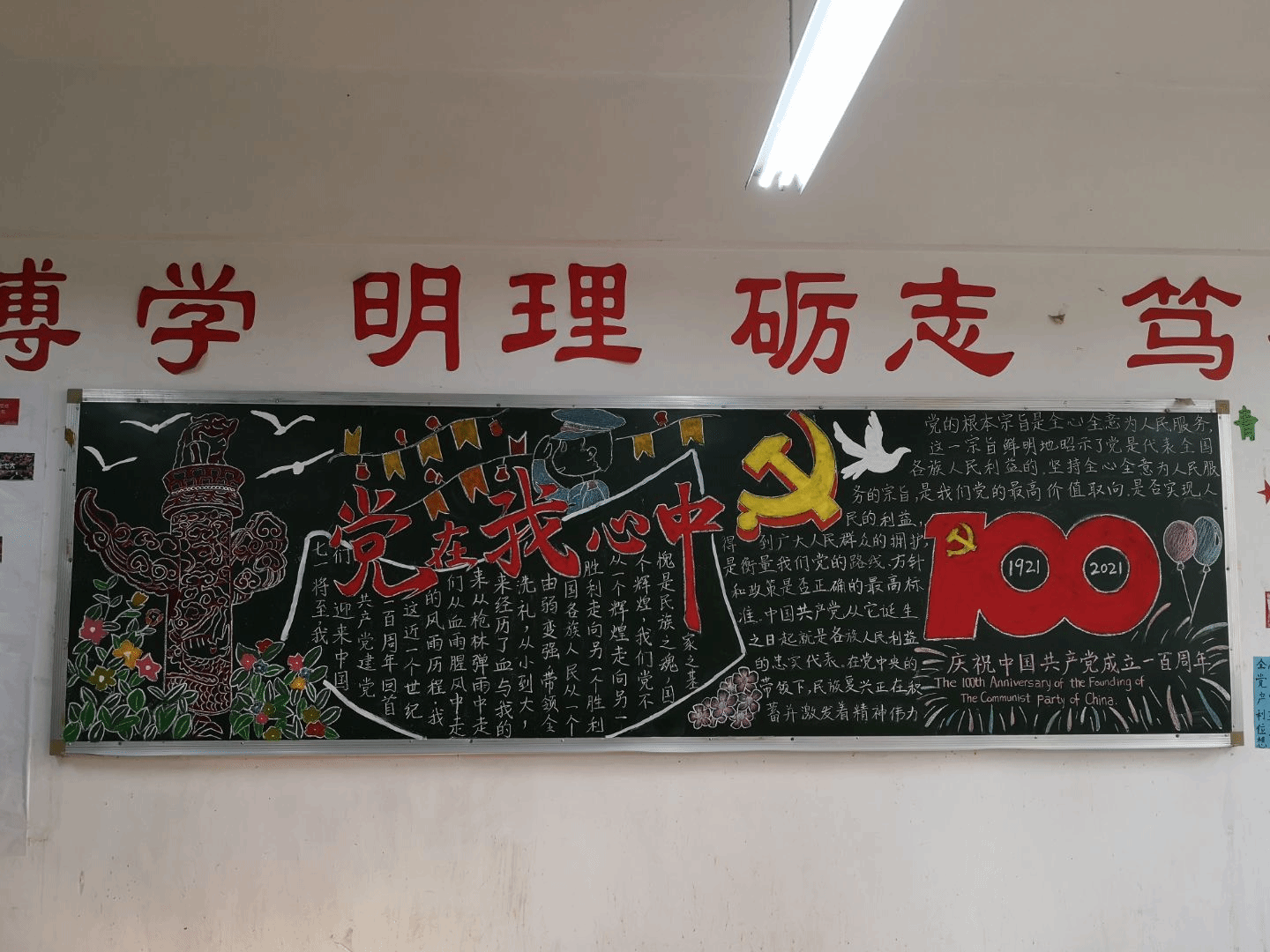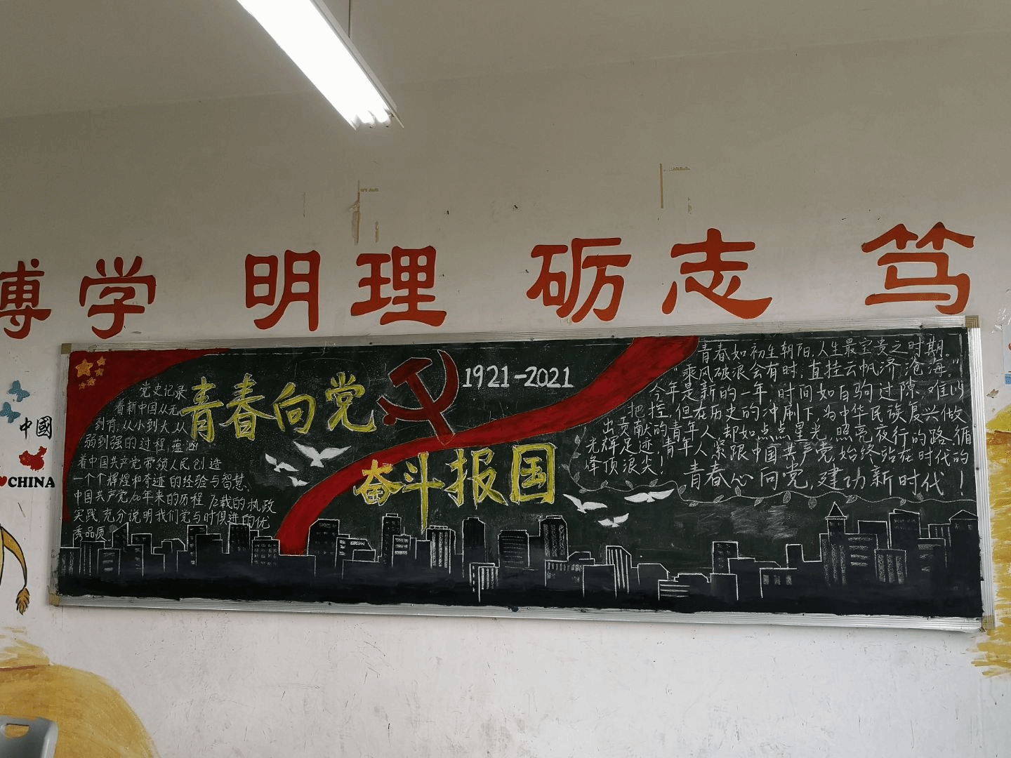 学生会承办的,以“青春向党,奋斗报国”为主题的教室装扮大赛在博文楼如期开展。