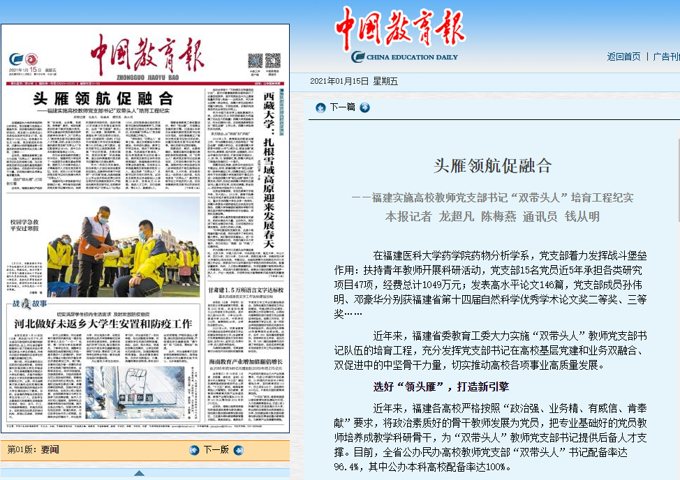 (7)支部先进做法被中国教育报头版头条报道(2021.1.15)