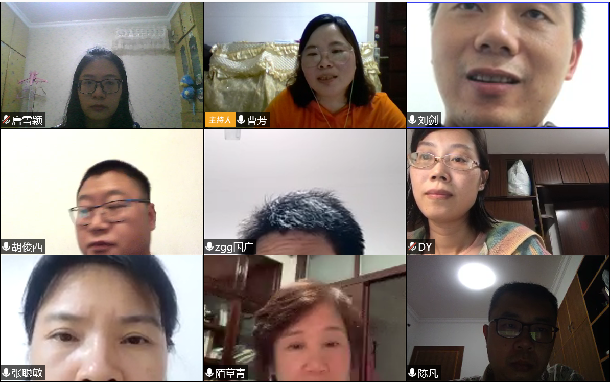 紧接着生物系教师们根据自身线上教学情况交流心得。负责学生实习支教指导的罗云老师提出“在疫情期间,没办法实习的情况下,要求学生录制讲课视频,然后给每个学生进行讲评,虽然工作量太大,但是看到学生的成长和进步,非常开心。”罗开梅老师建议“利用超星平台里PBL分组讨论功能,实现组内讨论组间评价,有助于后期的教学评价”;刘剑老师和陈艺璇老师则提出“学生前面学习态度比较积极,目前出现懈怠现象,课堂讨论不积极”。应对各种线上教学出现的问题,老师们开展了积极的交流讨论,为进一步提高线上教学质量提供了宝贵经验。