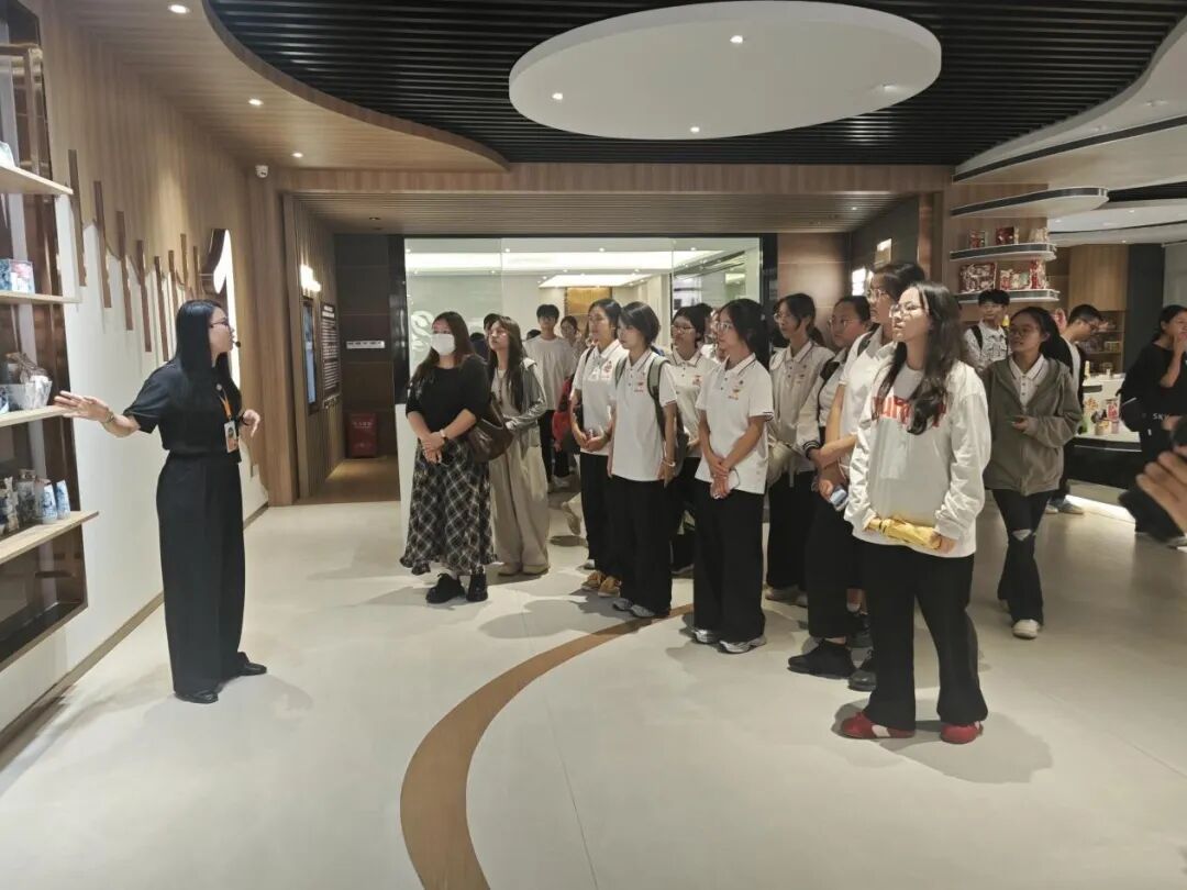 随后,在企业工作人员的带领下,同学们前往三楼产品展示区参观学习。工作人员结合产品特性、研发技术、市场定位等方面,为大家详细介绍了各类热销产品的核心优势与应用场景。同学们认真聆听、积极互动,不时驻足观察产品细节,主动向工作人员请教行业趋势、岗位需求等问题,现场交流氛围热烈。
