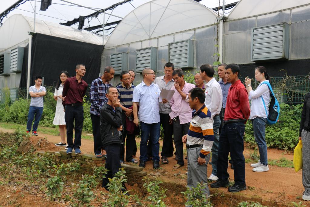 讲座结束后,教师党员们分两组开展实地调研指导。一组到和溪镇坂场村花卉苗木种植基地,开展病虫害防治、土壤利用等方面的调研与指导,诊断病情并现场答疑;另一组到月星村调研了解桃金娘、当地特产猴公茶等种植生产情况,并对桃金娘扦插技术提出指导性意见。