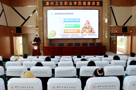 李辉老师结合专业特点,为卫校师生作了题为“食品营养与人体健康”讲座。讲座围绕“营养与肥胖、营养与高血压、营养与脑卒中、营养与糖尿病、营养与癌症”五个方面为医学生展示了营养健康的新视角。