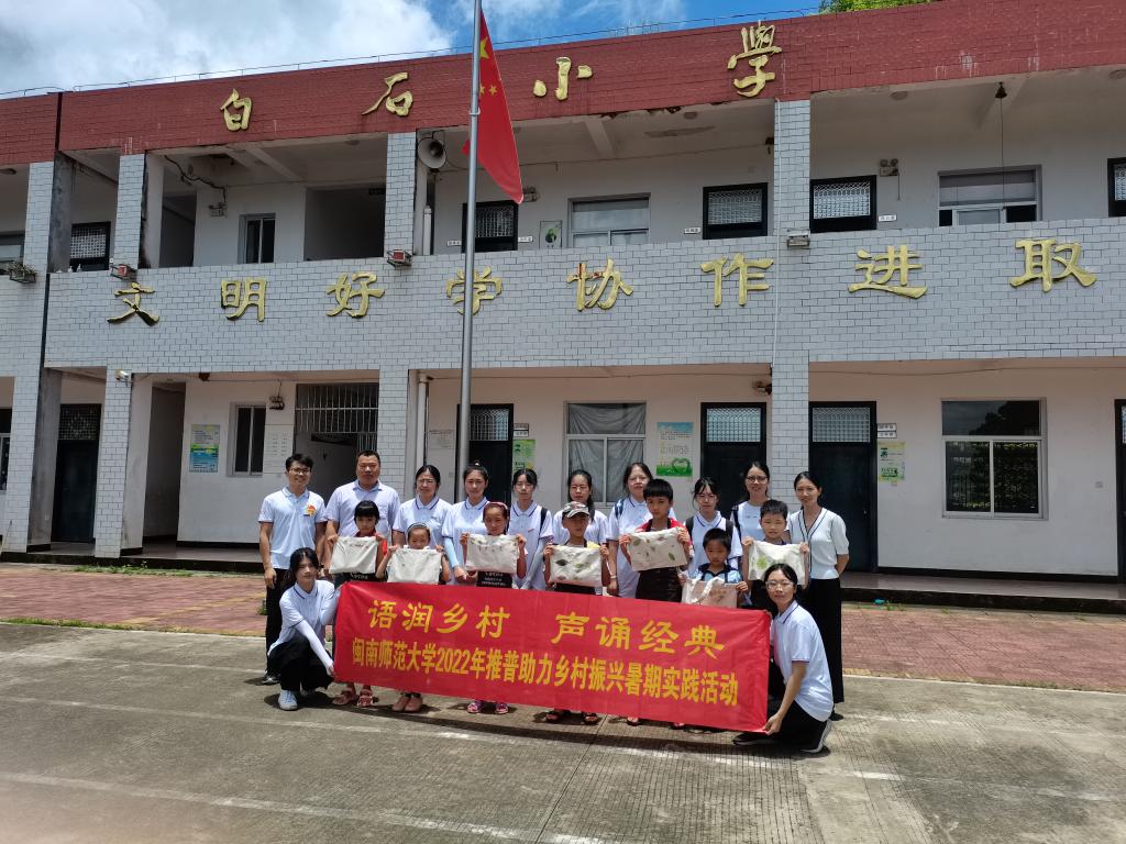 乡村振兴,既要塑形,也要铸魂。本次实践团围绕推普助力乡村振兴的主题,先后在白石村与高田村开展普通话推广活动,以文化建设助力乡村振兴。通过诵读经典诗句,传承中华经典;纠正读音错误,引导学生和民众讲好普通话、用好普通话,增强语音规范意识,共创美好乡村生活。