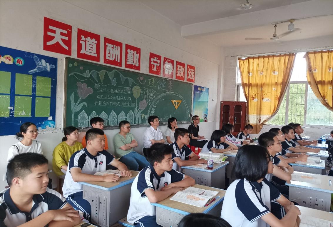 和南靖二中生物组教师、学院实习生等在初二(3)班的听课活动