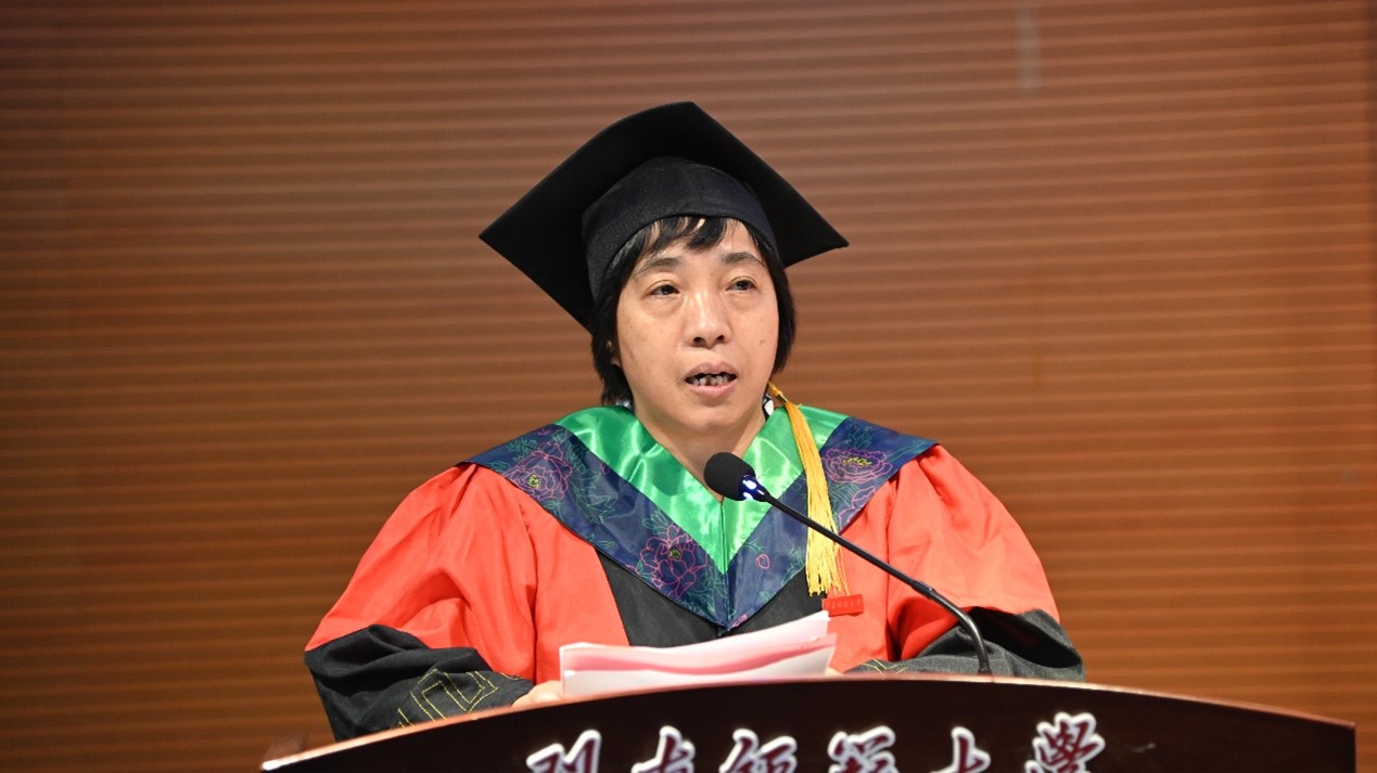 陆銮眉院长为毕业生们上了大学的最后一堂课,代表学院师生员工向全体毕业生送去真挚祝福,并向顺利完成学业、即将远帆起航的毕业生们提出了五点希望:希望同学们充实自我、永葆初心;仰望星空、脚踏实地;精进技能,不断进取;勇担责任,不负时代;常怀感恩,心存善良。她表示学院永远是毕业生们温暖的家,欢迎常回家看看。