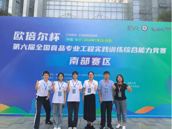 7月13日至15日,“欧倍尔杯”第六届全国食品专业工程实践训练综合能力竞赛(南部赛区)在中南林业科技大学举行。食品系刘静娜、李辉和胡泳华老师带领2022级食品质量与安全专业李秀文、杨琳和食品营养与健康专业孙雨桐3位同学参加比赛。在指导老师的精心指导下,同学们认真准备,积极应对,稳定发挥,展示了扎实的理论素养和过硬的专业实践能力,首次参赛取得了二等奖的好成绩。通过参加本次比赛,加强了我系与兄弟院校的交流,找到了差距与不足,为专业建设、实践教学和技能竞赛积累了宝贵的经验。