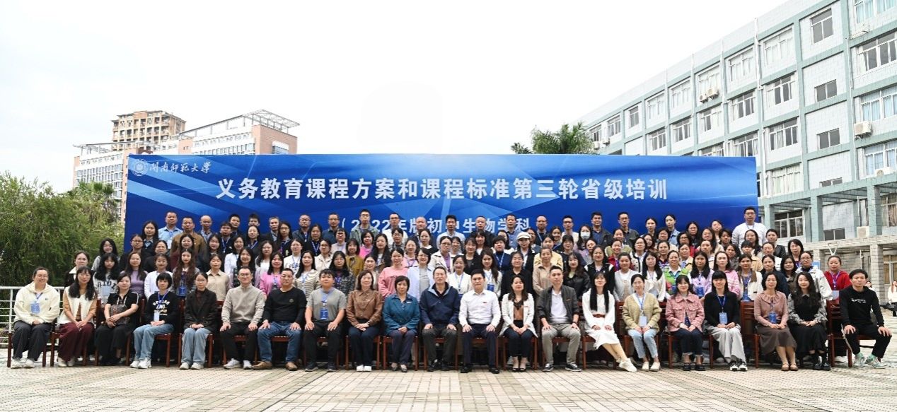 生物科学系主任曹芳,办公室主任陈振兴,义务教育课程方案和课程标准(2022年版)省级第三轮培训(初中生物学科)班全体学员以及 足交