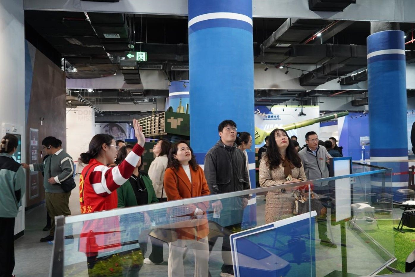 会后,陆銮眉院长一行参观了漳州科技馆五楼公共安全展厅与三楼大国重器展厅。在展厅内,由我校实习生担任讲解员,生动演示了“翻车体验”“火灾逃生”等互动展项,并围绕“福建舰”“华龙一号”等大国重器展品进行专业科普。实习生们扎实的知识储备与流畅的讲解能力,赢得了在场人员的高度评价,充分展现了学院“学用结合”的人才培养成果。