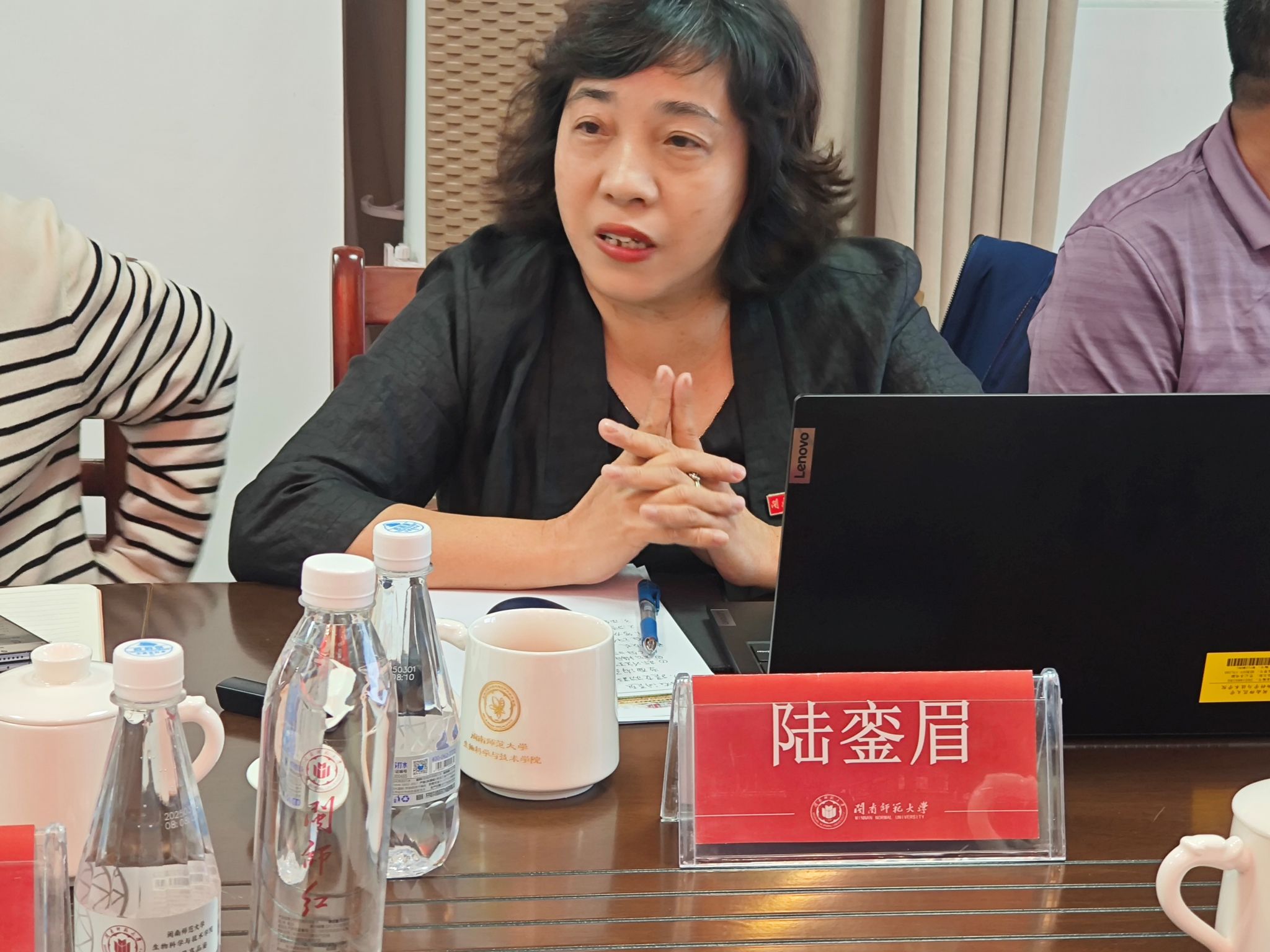 生科院院长陆銮眉做中期审核工作汇报。她表示,学院将依据专家组指导意见,细化整改分工,优化课程体系与质量监控机制,深化教学改革创新,着力构建卓越教师培养体系,精准对接国家基础教育战略发展需求。