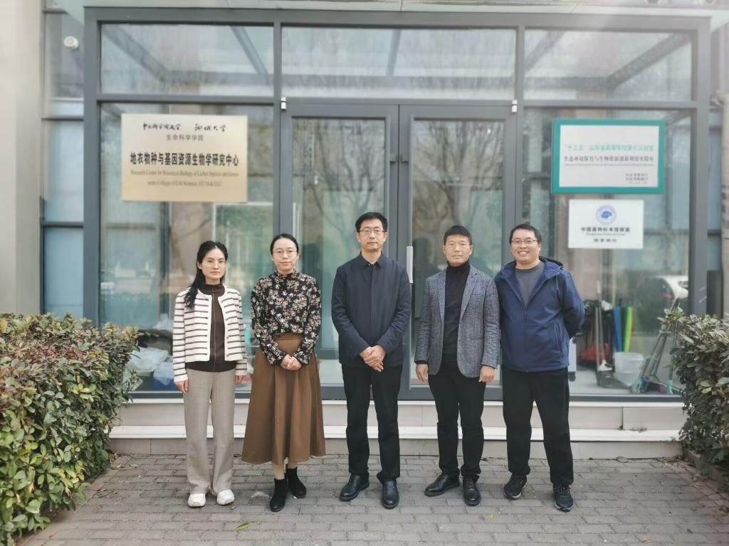 王伟成博士前往聊城大学(山东)地衣物种与基因资源生物学研究中心进行实地走访交流(该中心同时是“十三五”山东省高等学校重点实验室、中国菌物标本馆联盟理事单位),受到研究中心负责人、生命科学学院院长、中国菌物学会地衣分会主任贾泽峰教授的热情欢迎。