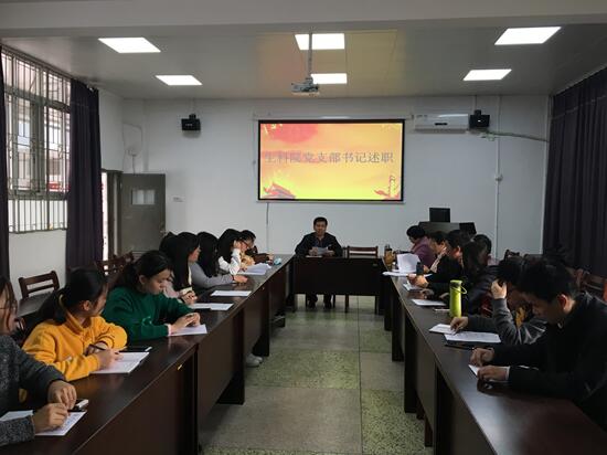 1月18日下午3点,生科院党委在学院学术报告厅召开党支部书记述职报告会,述职报告由学院党务秘书主持,学院党委委员、各师生党支部书记出席了本次会议。