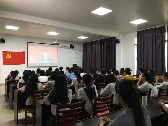 上午九点,党的十九大开幕会准时开始,生科院党委组织师生党员、主要学生干部于达南一楼学术报告厅通过直播观看了中国共产党第十九次人民代表大会的开幕会。