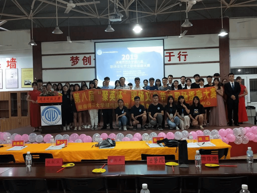 第八届“聚英杯”职场文化节之职场逐鹿大赛总决赛在中善海洋餐厅四楼如期举行。校就业创业导师梁忠福、生科院团委副书记廖小文、天翼学子公司CEO吴燕海、聚英集团闽试教招蔡骏、杨琛受邀担任大赛评委,同时请到院校各大组织代表作为大众评审现场参与投票。