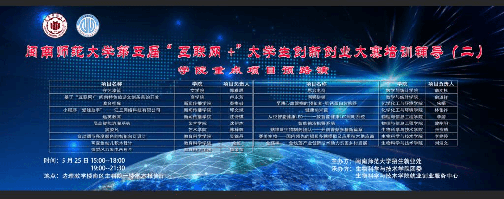 第五届“互联网+”大学生创新创业大赛培训辅导。