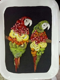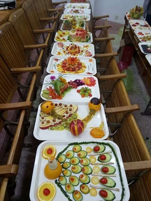 水果拼盘大赛来源于生活继而创造生活,旨在以水果为素材尽显生活的创意,其不仅丰富了同学们的课余生活,还培养了同学们的创新思维,更提高了同学们的想象力、动手能力以及临场应变能力。