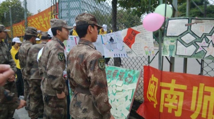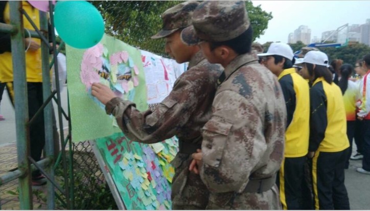 军训虽然辛苦,但是也不缺乏乐趣,更不缺乏一颗感恩之心。同学们将写着感恩教官话语的便利贴一张张贴在板块上,同时把精心做的手抄报固定好。每到休息时间,教官和同学们都纷纷围过来看便利贴和手抄报,在熙攘的人群中,不仅看到了同学们纯真的感恩之心,更从教官们的眼神中看到了感动与欣慰。