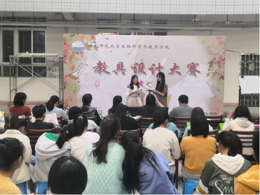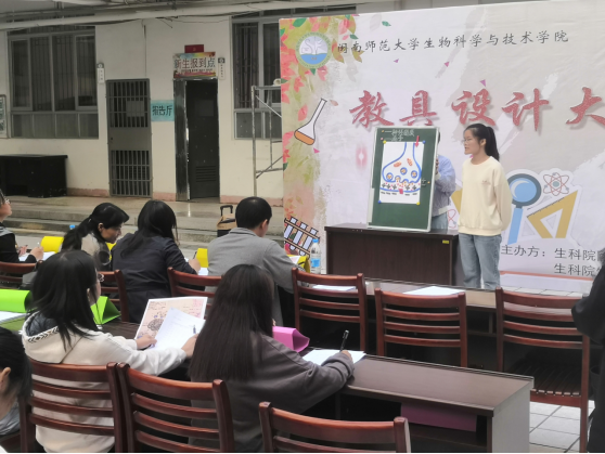 12月5日下午14:30生科院第一届教具设计大赛在达南一楼顺利举行。本次大赛以“方寸几何,创意教具”为主题,旨在提高我校学生的师范生专业相关技能和科学素养。大赛邀请了生科院生物系曹芳老师、刘剑老师、张聪敏老师、罗开梅老师,许玉芬老师,宋楠林、邱晓莉两位研究生及各学生组织代表担任评委。