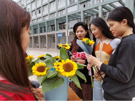 19园艺班在校内举行了为期两天的向日葵切花义卖活动。