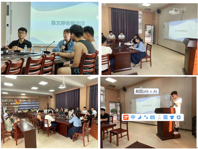 往年运动会的成就,引导大家调整心态,同时给予运动员极大鼓励,并提出期望。教练员代表沈健川和运动员代表杨艺超分别发言,沈健川向各位运动员讲解了训练冲刺和比赛注意事项,提出要刻苦认真训练的同时也要充分相信自己、相信教练。杨艺超向其他运动员传授了自己的训练以及参赛经验,其中强调到心态和耐力是决定比赛发挥程度好坏的重要因素,只要在运动场上放平心态、自信、不轻言放弃,就已经成功一半。最后,动员会向帮扶志愿者的工作提出了相关要求。