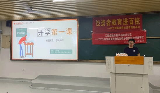 召开了新学期防非反诈开学第一课讲座。新生辅导员曾佩旖老师,2023级新生参加了该讲座,讲座由东方财富证券代表占耀铭主讲。