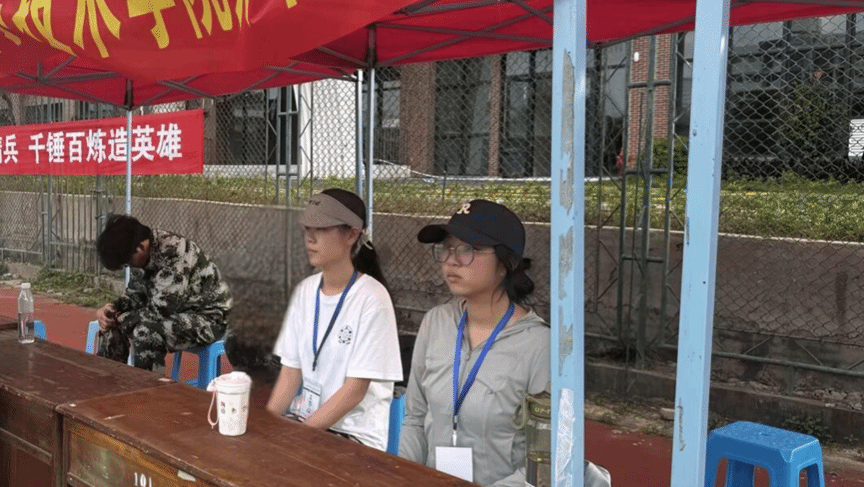 大训练场旁的大本营里,学长学姐们的值班身影格外显眼。他们围坐在值班桌前,一边留意着训练场上的动静,一边有条不紊地处理各项后勤事务:看到饮水点的桶装水空了,便立刻起身,合力运输桶装水;遇到同学训练后体力不支,还会主动搀扶到休息区,递上纸巾和水。他们也会在休息间隙,和学弟学妹们聊天,分享军训小技巧,或是帮忙看管随身物品,让大家能安心投入训练。这方小小的大本营,因他们的值守变得格外安心,成了军训场边最贴心的“后盾驿站”。